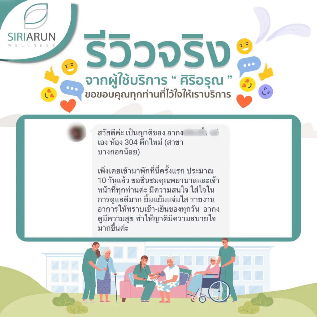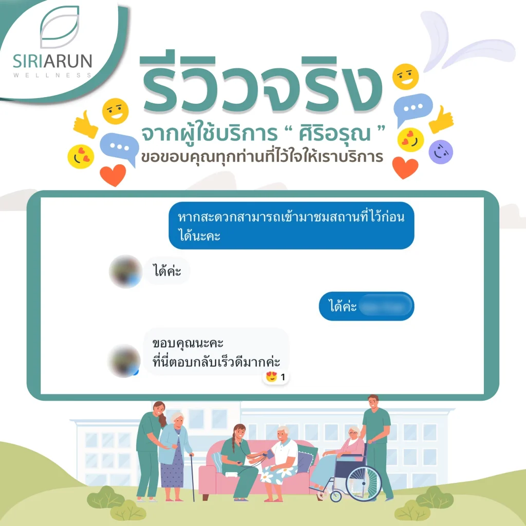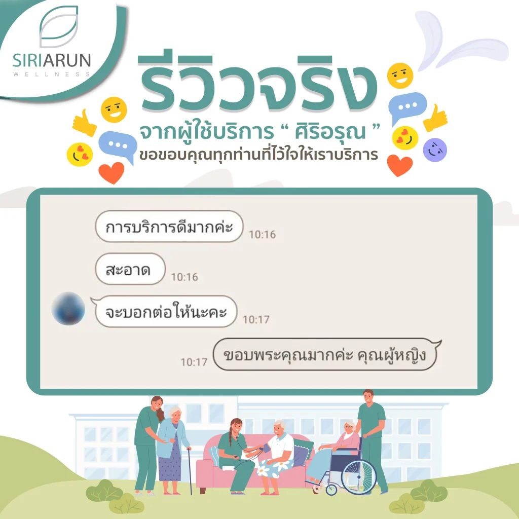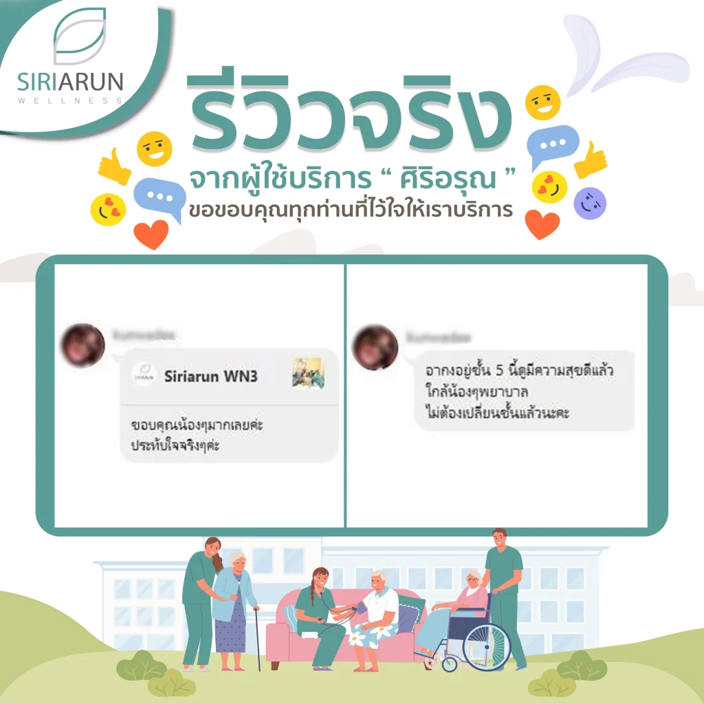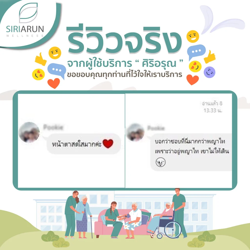 “ ผู้ใช้บริการและครอบครัวมั่นใจใน Siri Arun Wellness ศูนย์พักฟื้นและดูแลผู้สูงอายุ ที่ให้ความสำคัญทั้งด้านสุขภาพและความสุข ”