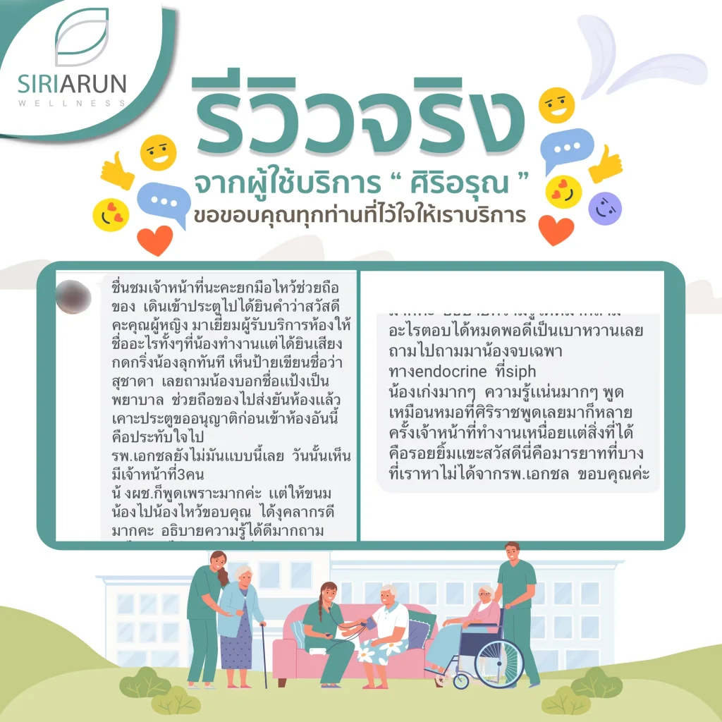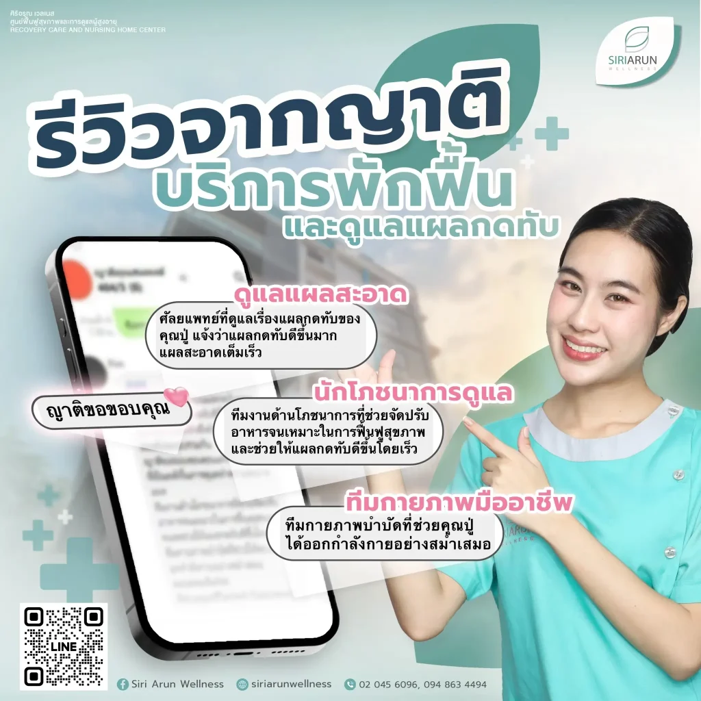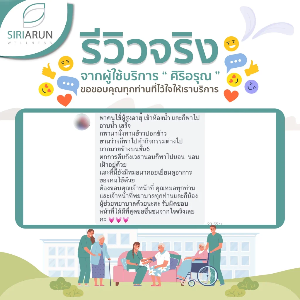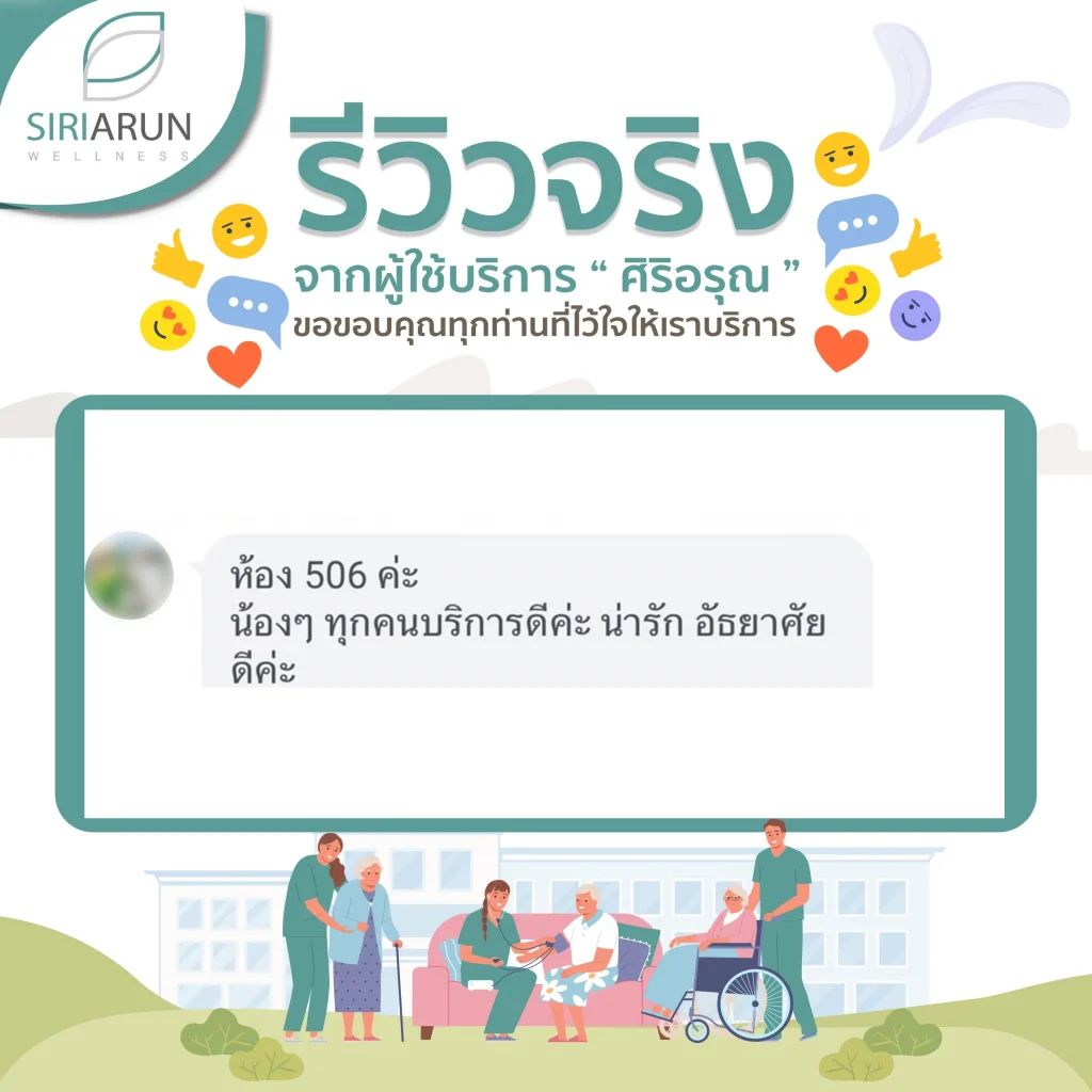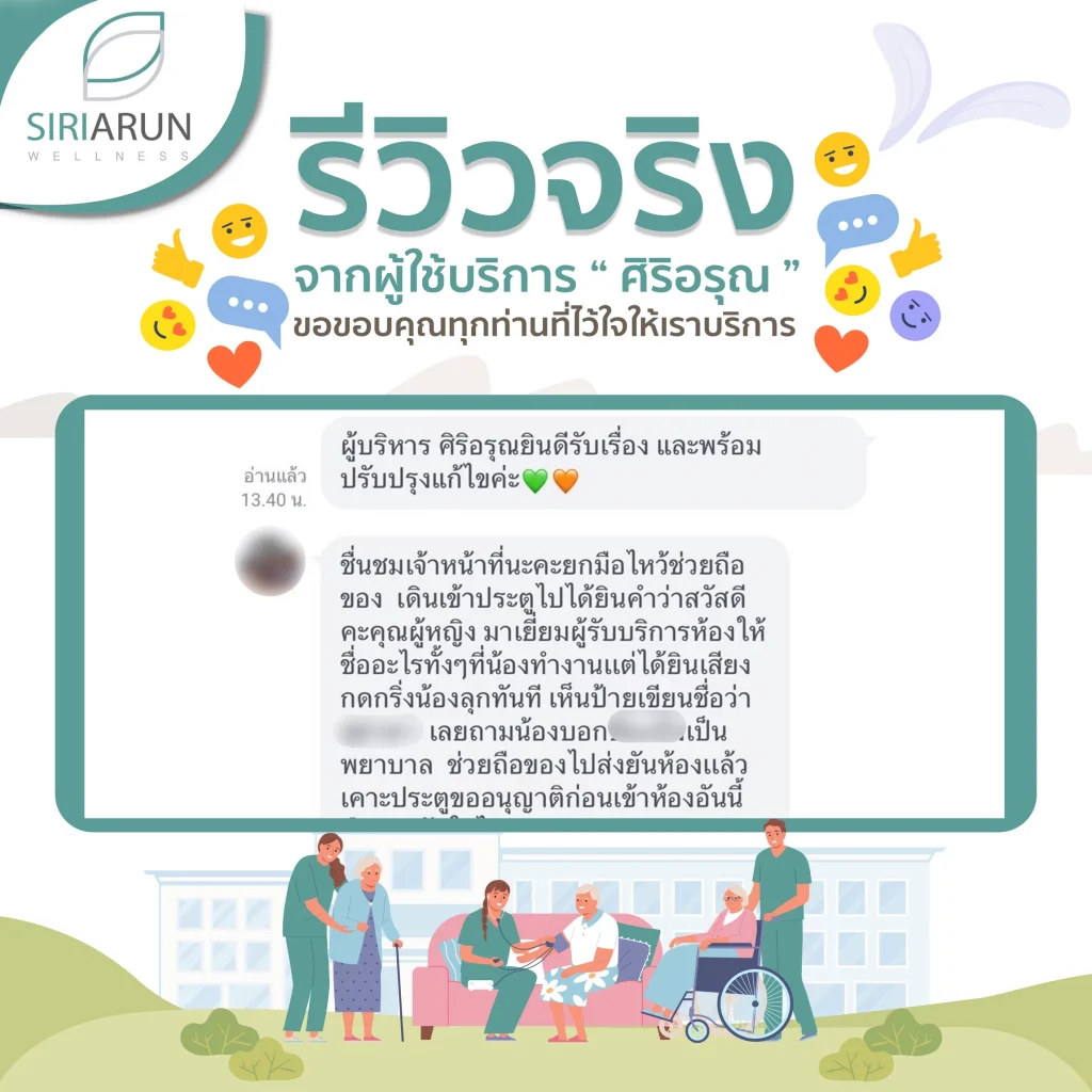 “ ผู้ใช้บริการและครอบครัวมั่นใจใน Siri Arun Wellness ศูนย์พักฟื้นและดูแลผู้สูงอายุ ที่ให้ความสำคัญทั้งด้านสุขภาพและความสุข ”